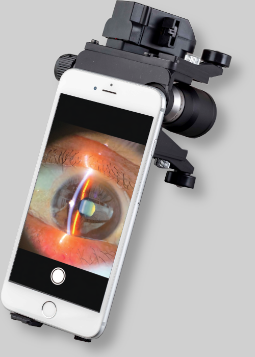 Read More専用スマホアプリに患者情報、問診内容を入力した後、MS1をスマホにセットし、眼の撮影を行います。全て終了したら、送信します。